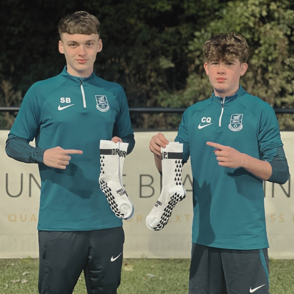 AndyFinally grip socks for young players! I coach an under 10s team and I was getting a bit annoyed with the players wearing grip socks that were just too big for them (my son included). I saw dripsox offer smaller sizes so got some for my boy. They fit great and he thinks they're really cool. Now most of the team have them too which is good. Hope to see more colours released at some point.